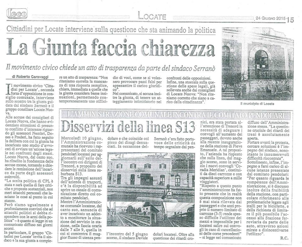 "CITTADINI PER LOCATE INTERVIENE SULLA QUESTIONE CHE STA ANIMANDO LA POLITICA...IL MOVIMENTO CIVICO CHIEDE UN ATTO DI TRASPARENZA DA PARTE DEL SINDACO SERRANO'-Articolo pubblicato su L'Eco del 24 giugno da Roberto Caravaggi