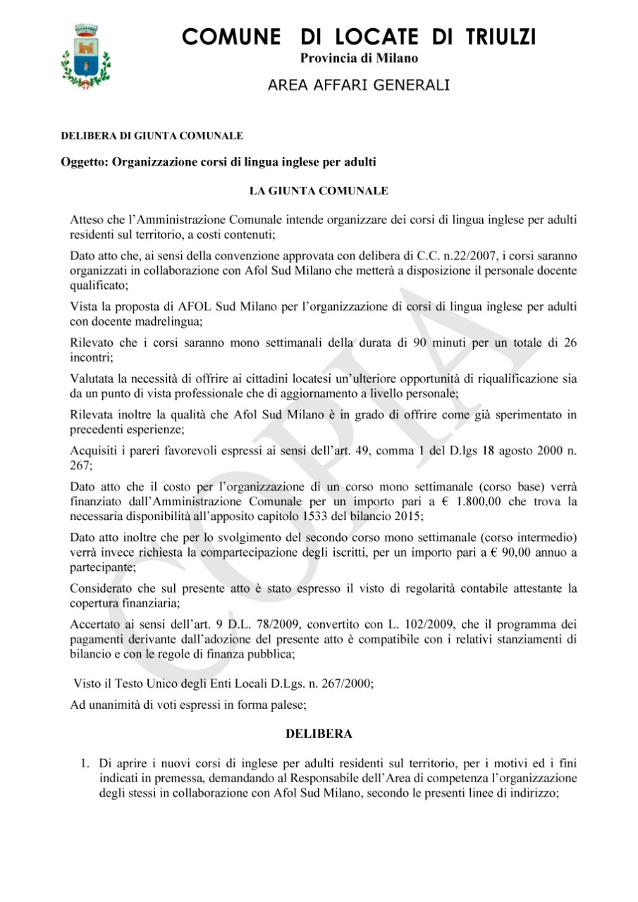 I corsi di Inglese per Adulti residenti a Locate. Un primo passo per aiutare i locatesi a trovare lavoro all'Outlet.
